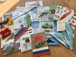 В рамках акций дети пишут письма и оформляют праздничные открытки российским военнослужащим – участникам специальной военной операции со словами благодарности, поддержки, с добрыми пожеланиями и поздравлениями с Днем защитника Отечества.