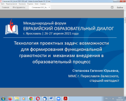 27.04.2021 старший методист ММС Степанова Е.Ю. представила опыт работы по теме РИП на Международном форуме «Евразийский образовательный диалог».