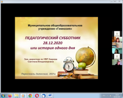 В ходе семинара методисты ММС осветили вопросы методического сопровождения педагогов, а завучи школ (МОУ СШ № 1, МОУ СШ № 2, МОУ «Гимназия») поделились опытом организации внутрифирменного обучения. Учителя МОУ СШ № 2, МОУ СШ № 4, МОУ СШ № 9, МОУ Берендеевской СШ и ЧОУ «Переславская православная гимназия» им. св. благ. вел. кн. А. Невского» представили педагогические практики формирования функциональной грамотности школьников на уроках и занятиях внеурочной деятельности. Семинар проходил в онлайн-формате. В нём приняли участие педагогические работники из разных муниципальных районов Ярославской области (43 точки подключения). Методистами ГОУ ДПО ЯО ИРО и другими участниками семинара был отмечен высокий качественный уровень его проведения и выступлений.